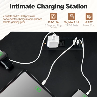 - Intimate Power Outlet & CPU Stand: The intimate charging station is equipped with 2 outlets (125V/12A) and 2 USB ports (5V, Max 2.1A) to provide fast charging options for mobile phones, tablets, and gaming gear, etc. The bonus monitor stand allows for more space to store your computer host.