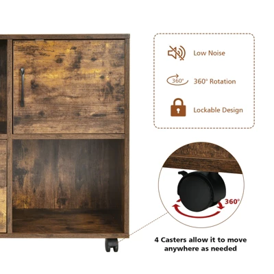 - Versatile & Flexible Features: Equipped with four 360° swiveling casters (2 of which are lockable), the wood mobile file cabinet can be placed everywhere around your space. What’s more, there is almost no noise during the rotation for better use experience.