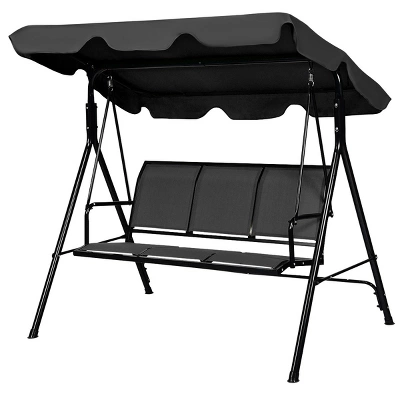 Enjoy the wonderful weather with your friends and family by lounging on our new 3 person canopy swing chair. The frame is made of long-lasting powder coated steel with a water resistant polyester canopy for extra shade. Spacious seat allows 3 people sitting on and sturdy base ensures stability. Arm rests on each side, which ensure the safety. It will be a good addition to your home.