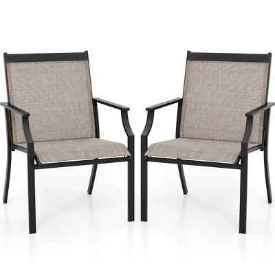 It’s time to enjoy cosy leisure time with this patio chairs set.Crafted with skin-friendly and breathable fabric, the outdoor chairs set enables you to sit in comfort. In addition, the curved backrest, smooth armrests and wide seat bring comfortable support. The sturdy metal frame ensures reliable weight capacity and is long-lasting for long-term usage. This delicate dining chairs set goes well with any style of outdoor decor, and is applicable to patio, garden and more occasions.