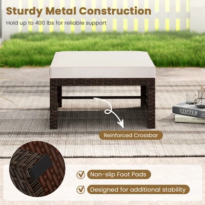 - [Sturdy Metal Structure]: Built with a heavy-duty metal frame, each patio ottoman ensures long-lasting use and supports an impressive weight capacity of up to 400 lbs. In addition, the reinforced crossbar and non-slip foot pads enhance overall stability.