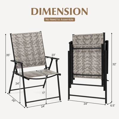 - Product Dimension: With 24”W x 26”D x 35”H unfolding dimension and 17” seat height, these ergonomic patio chairs match your dining table (not included) perfectly. No need to assemble.