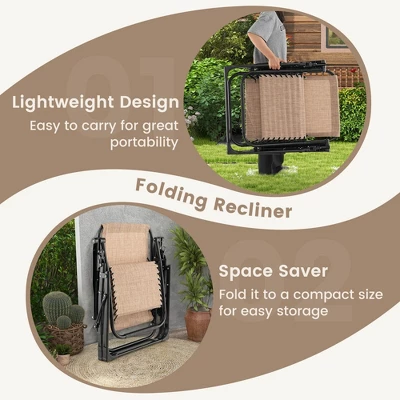 This outdoor recliner is equipped with an adjustable reclining system that allows you to find your perfect position, ranging from 90 to 170 degrees. Additionally, it features a lockable mechanism, ensuring that once you find your desired position, it will remain securely in place. The upgraded comfort and strong bearing capacity of this gravity recliner chair are provided by its soft padded cushion and sturdy metal frame, supporting up to 440 lbs. If you prefer a more breathable experience, simply remove the cushion. This patio recliner also comes with a cup holder tray, allowing you to keep your favorite beverage within arm’s reach as you unwind. Furthermore, the headrest offers additional support for your neck and head.